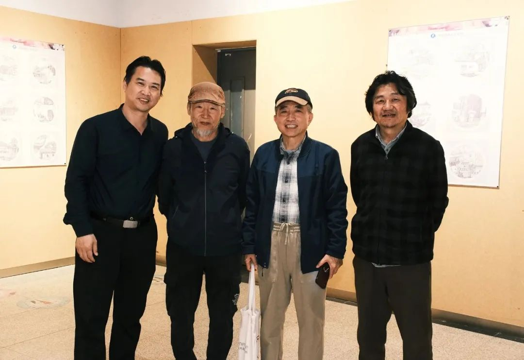 左起:天津美协水彩画专委会副会长滑寒冰老师、天津大学陈学文老师、天津美协水彩画专委会秘书长王文元老师、天津大学邱景亮老师在展览现场。