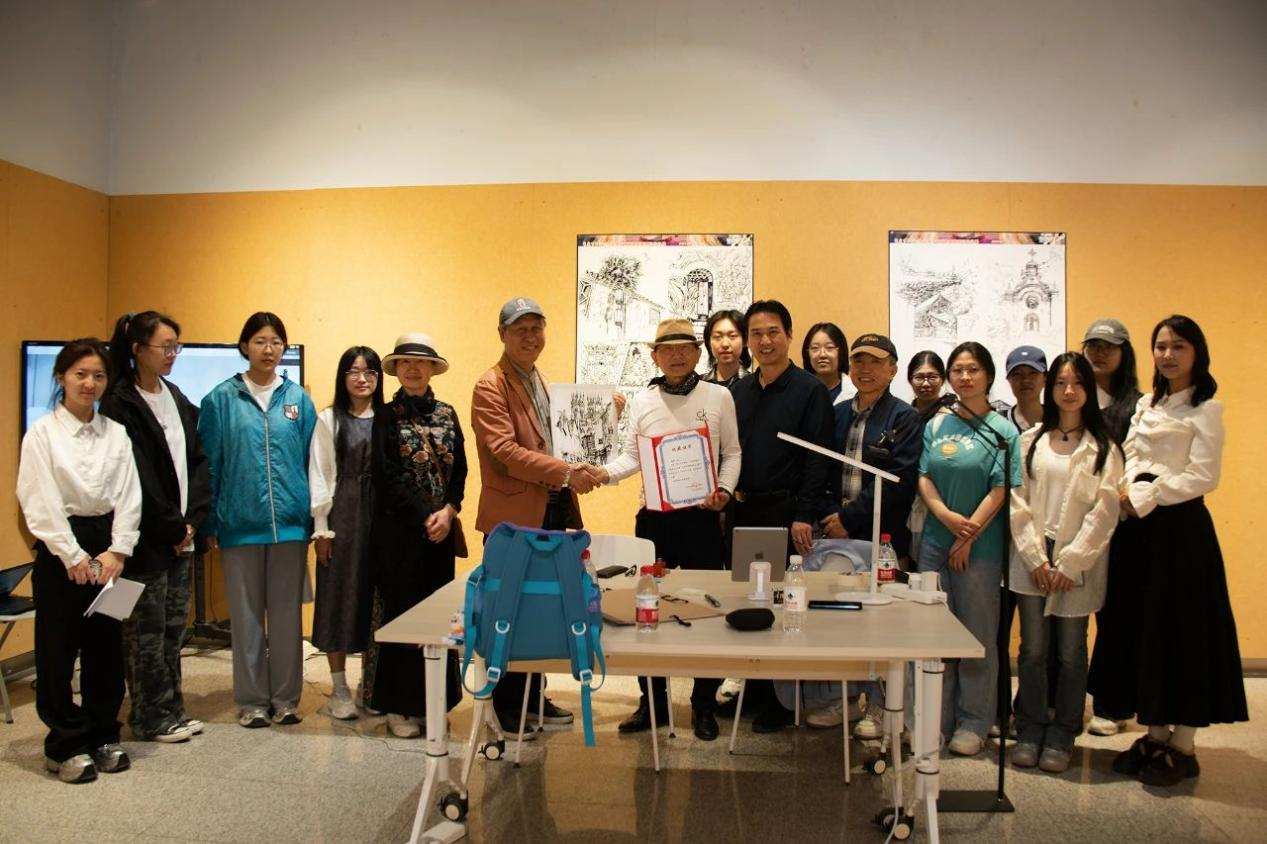 当日下午,著名钢笔画艺术家、国际策展人唐亮老师以自己的创作经历作讲解,为学生系统地讲述钢笔画技法以及长期写生、创作的体会等。