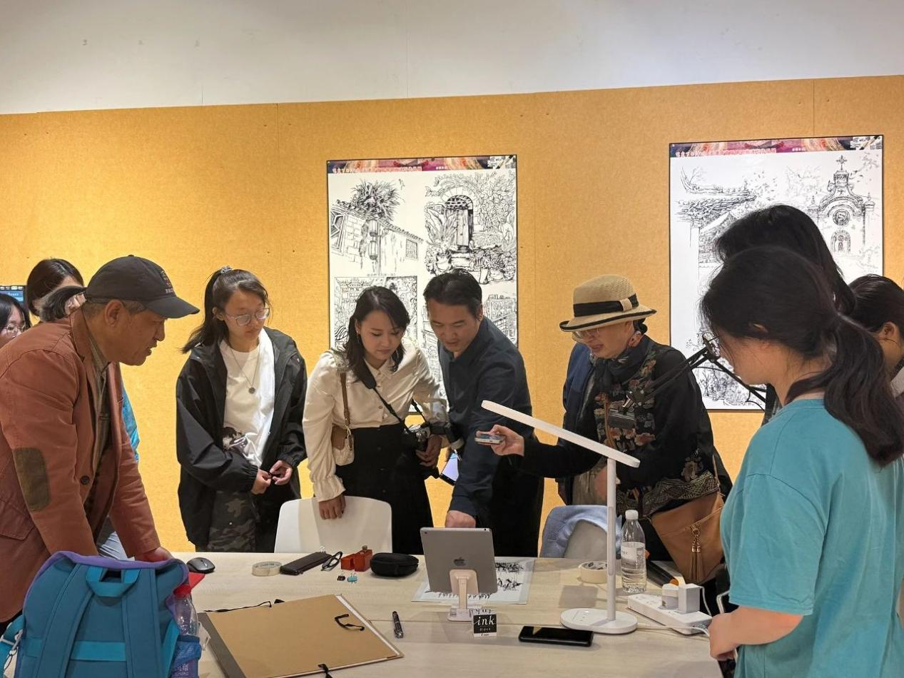 著名钢笔画艺术家、国际策展人唐亮老师现场创作钢笔画。