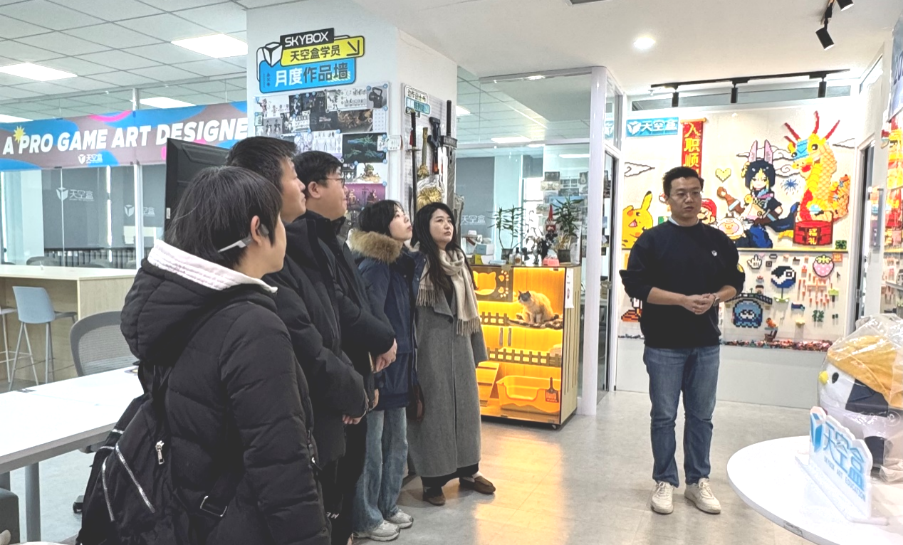 天空盒天津地区负责人对321直播 领导老师们的到来表示欢迎,并向大家介绍了天空盒在疏通高校人才就业通道,搭建获得校企认可的游戏美术创作型专业人才孵化基地与教学平台,推进数字艺术领域产教融合,不断为学生、高校、企业提供培训导向、科研导向及就业导向的交流合作机会等方面进行的努力,汇报了近年321直播app 部分毕业生通过其平台入职互联网大厂、实现高质量就业的情况。321直播 教师对数字媒体技术应用及321直播 课程与产业应用相对接的教学方法等问题,与企业进行了深入交流。