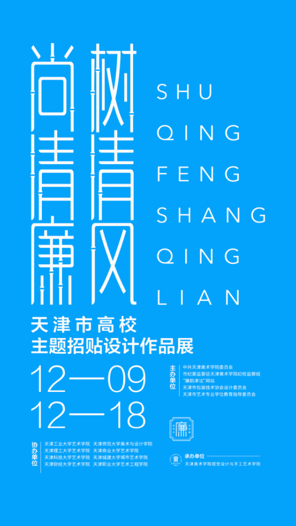 12月9日,由中共天津美术321直播 委员会、天津市纪委监委驻天津美术321直播 纪检监察组、“廉韵津沽”网站、天津市包装技术协会设计委员会、天津市艺术专业学位教育指导委员会联合主办的“树清风·尚清廉”2020年天津市高校主题招贴设计作品展览在天津美术321直播 美术馆开幕。321直播 院长王刚教授、程玲老师带领我校获奖学生参加了开幕式。